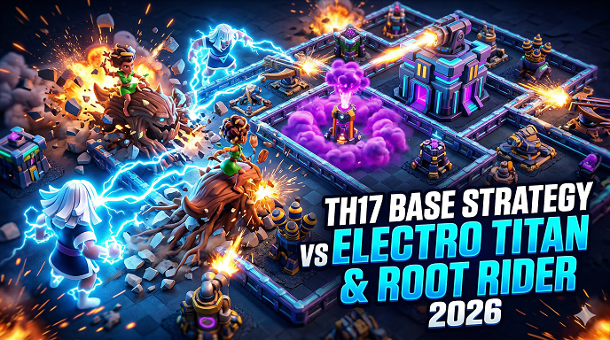Discover the ultimate TH17 anti Electro Titan Root Rider base strategy for 2026. Learn proven base design secrets, trap placements, and pathing tricks to stop 3-stars.