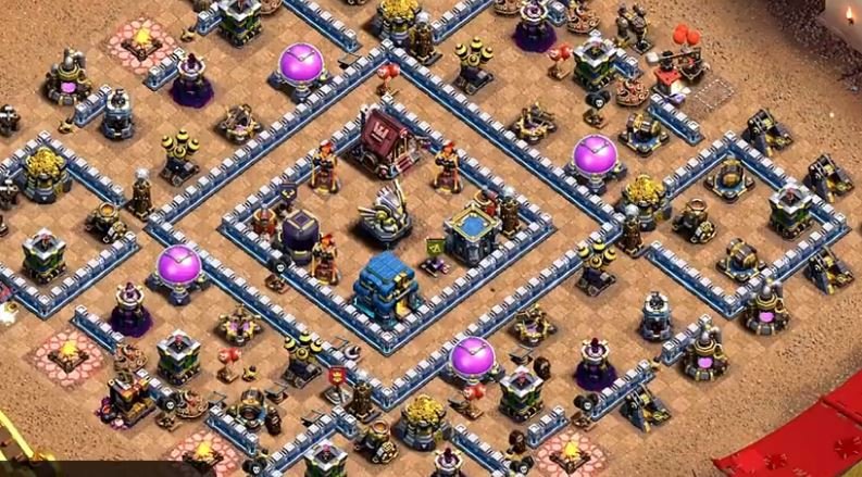 - The “Tornado Bait” Core The Town Hall 12 (Giga Tesla) is its own best defense. However, players are now experts at using the Siege Blimp to snipe the TH. In my experience, the most successful trophy bases place the Tornado Trap and a set of Seeking Air Mines about 3-4 tiles ahead of the Town Hall. You want to snag that Blimp just before it drops its cargo, forcing the troops to fight through the Giga Tesla’s explosion and slowing effect.