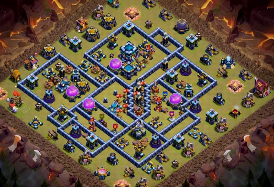 - Place your TH two tiles outside the main compartment so golems and pekkas path away from your loot. Surround it with two seeking air mines and a tesla farm so dragon spammers don’t get a free walk.