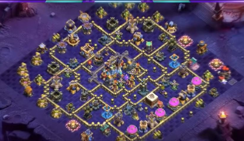 Translation: If you park him smack in the middle of a 4×4 box, he’ll never leave that box. But if you create a shallow “moat”—a two-wall ring—he will hop outward, surprise the attacker, and chain into a second defensive layer. That’s the secret sauce behind both TH18 war base links above.