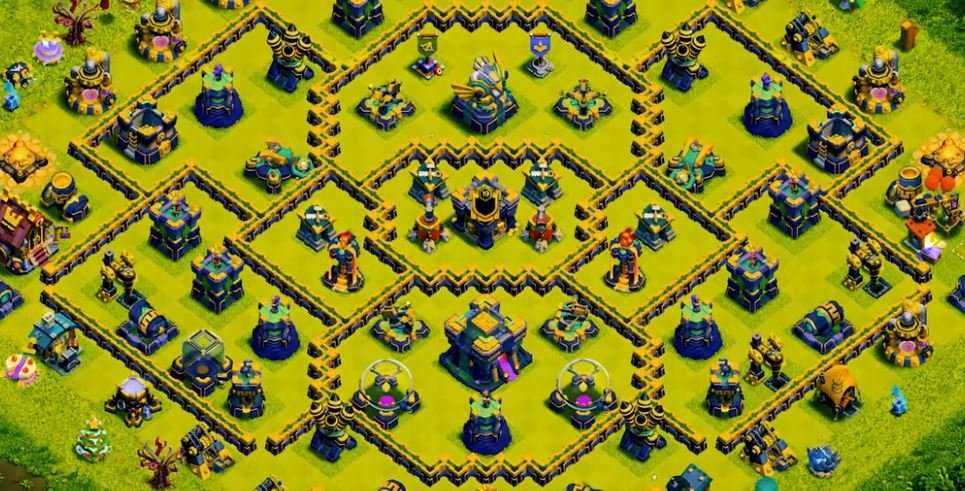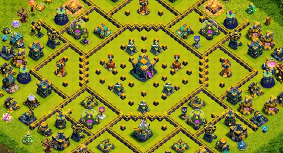 At Town Hall 14, the Giga Inferno is your deadliest weapon, especially due to the poison bomb that it drops when it is destroyed. However, if you place the Town Hall in the very center, attackers will easily be able to get a 2-star.